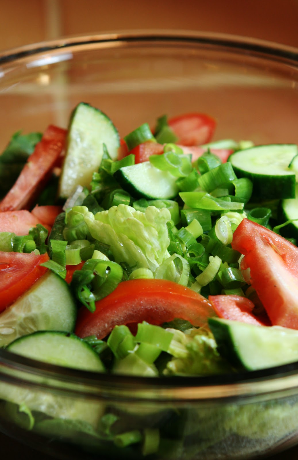 Make a salad, this one had spinach, tomatoe, cucumber and
